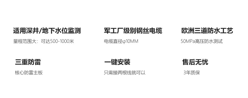 静压原理,内置超强抗高压高密封性传感器芯片,专利的一体成