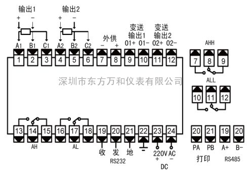 2:将现场数显表分别从WH6-A1的 4号端子和5号端子用2*1.5平方屏蔽电缆将信号传输到控制室无纸记录仪旁边,然后根据编号将1号显示器的4号端子接1C,5号端子接1A