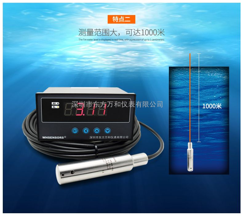 WH311水库水位液位控制器,水位显示器应用于水池水箱的水位测量,实时远传显示(*远可达5公里)。其中WH311防雷水位探头直接投入安装到水池或者水箱的底部,WH6液位专用显示器安装在控制室,实时监测水箱水池的实时水位,并带有高低液位报警功能,可辅助控制水泵自动补水排水,确保水池水箱系统保持高水位正常运行。 WH311水位传示仪专已应用于万达地产、耀宝地产 等多家建筑住宅安防现场,有效解决液位远传测量问 题的同时,助力楼宇安全数字化监控。
