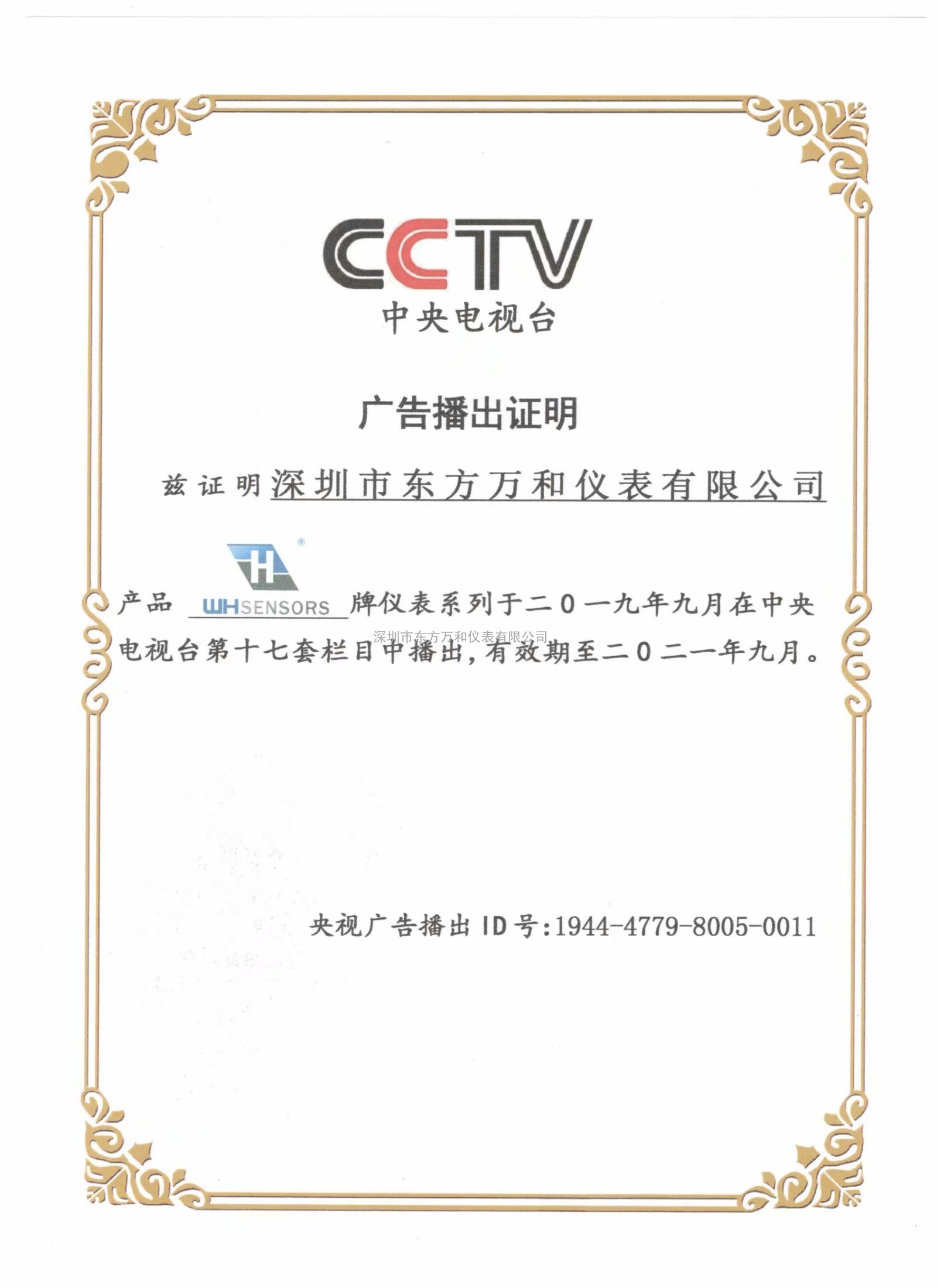 恭贺东方万和仪表成功荣登CCTV央视广告品牌