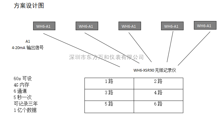2:将现场数显表分别从WH6-A1的 4号端子和5号端子用2*1.5平方屏蔽电缆将信号传输到控制室无纸记录仪旁边,然后根据编号将1号显示器的4号端子接1C,5号端子接1A