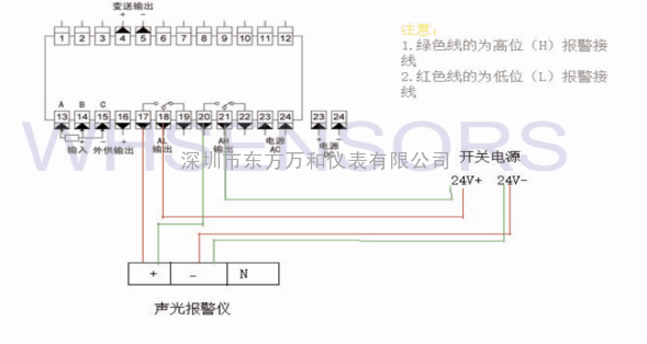 报警输出:2点继电器输出,触点容量220V AC,3A