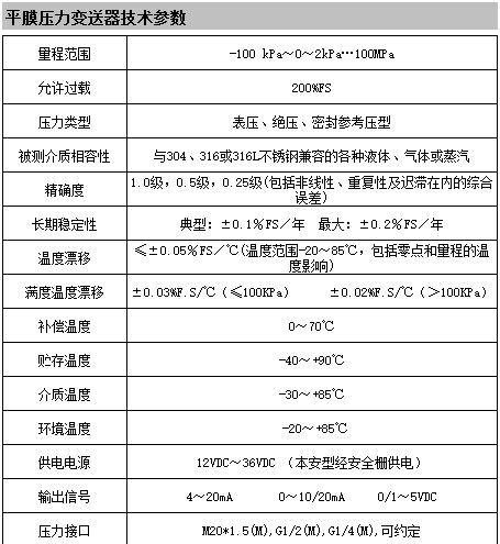WP435压力变送器(带显示)采用的WHSENSORS高精度厚膜传感器,其计量精度等级能达到0.1%,从而保证了测量的准确度。适用各种易堵、要求易清洗的场合使用。该产品广泛适用于电力、环保、造纸、乳业、酿酒、化工、治金等领域。型号有:WP435-2.5Mpa-1G44E2M3N压力变送器、WP435-0~2.5Mpa-2G44E2M3N压力变送器、WP435-2.5Mpa-5G94E2M3N压力变送器、WP435-0~1.6Mpa-2G34E2M3N、WP435-0~1.6Mpa-2G34E2M3SJ、WP435-2.5MPa-1G44E2M30等。 WP435-0~2.5MPa-2G34E2M3带显示无腔压力变送器